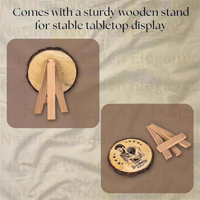 Giftanna Customize Engraved Natural Slice Wooden Round Photo Frame, Personalized Photo Gift For Birthday, Wedding, Real Wood Plaque With Wood Stand, Tabletop_ 5.5X5.5 Inches